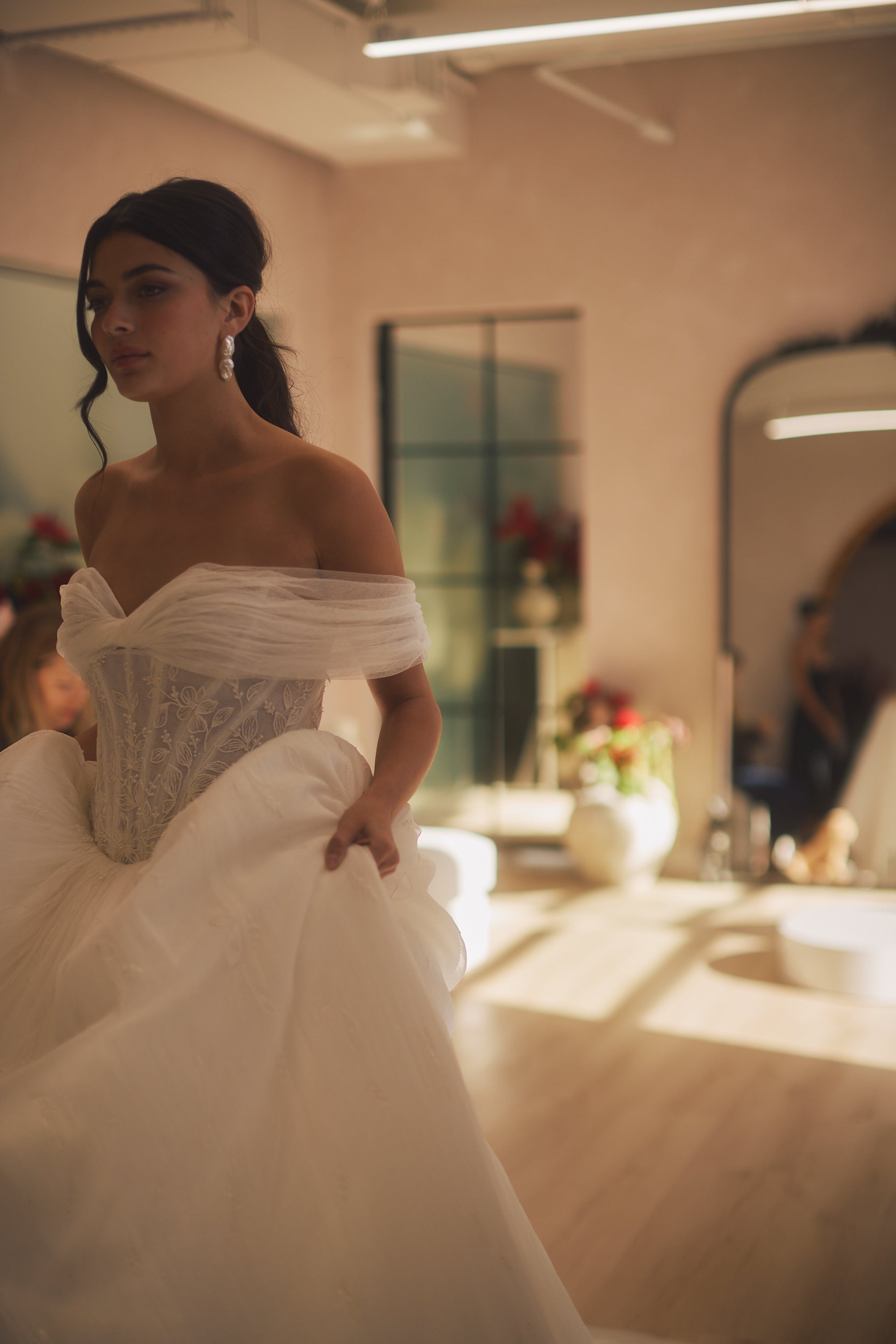 Reserve a private appointment at our New York City Atelier to experience handcrafted couture gowns in an intimate, bespoke setting.