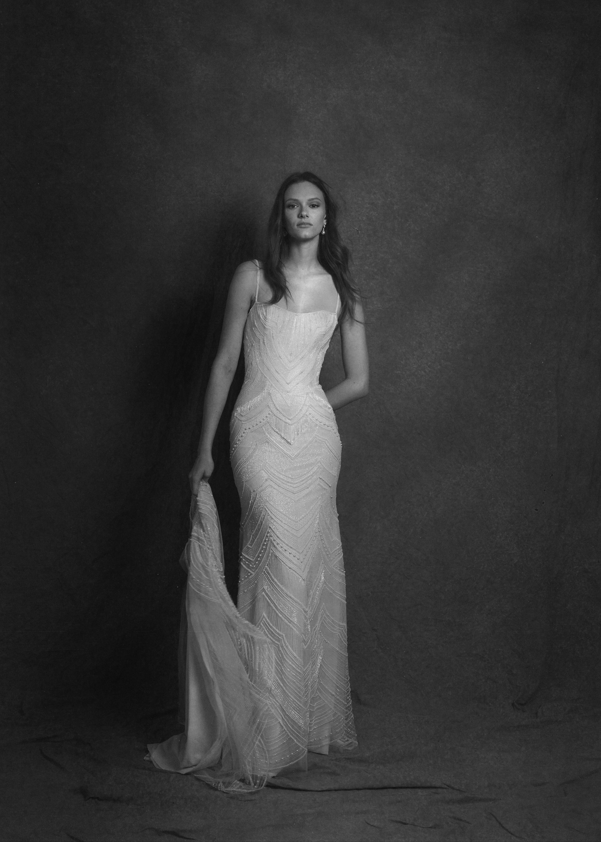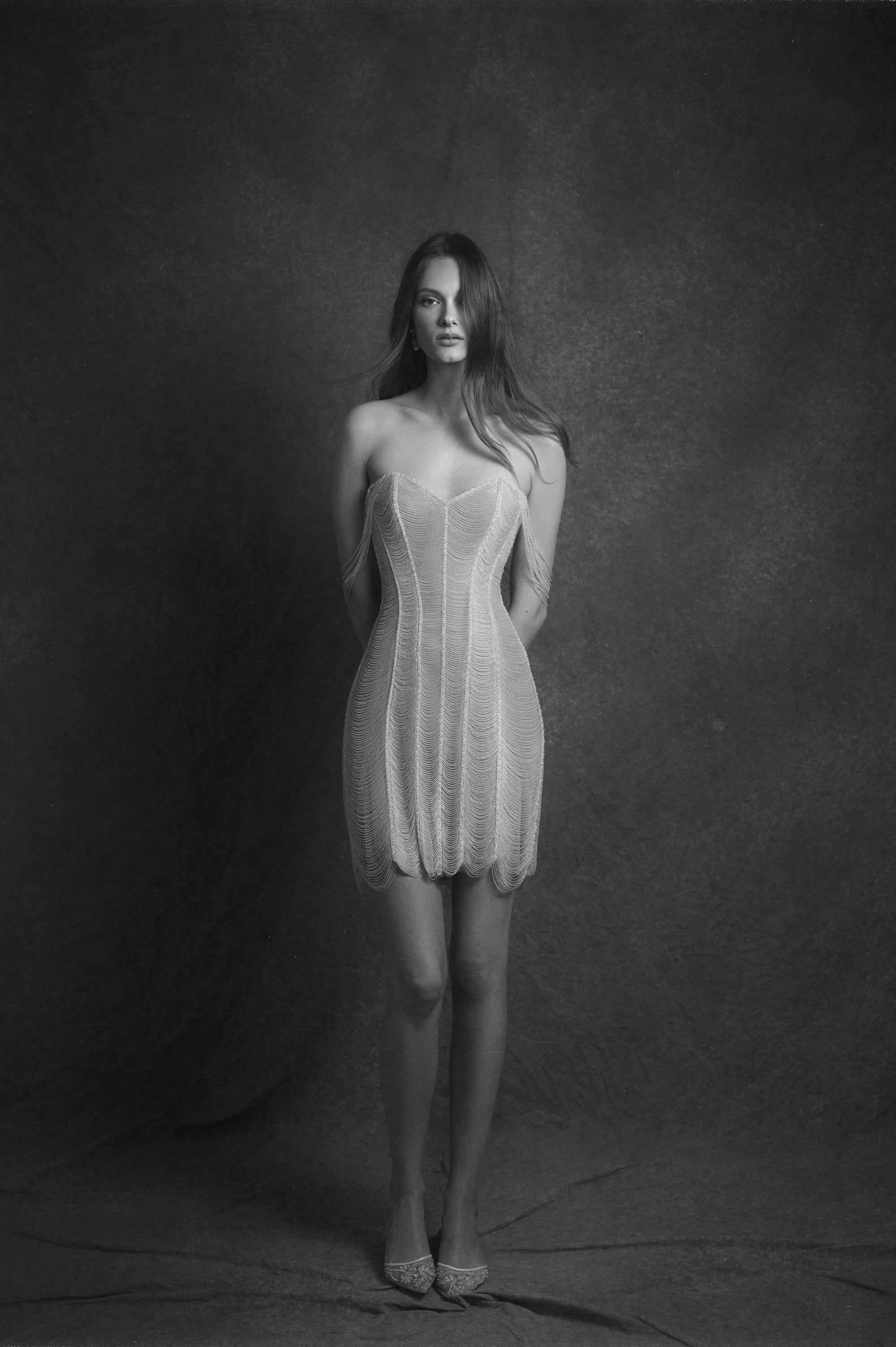 The theme "Unwoven" is a poetic and symbolic representation of patience, devotion, and the artistry of craftsmanship, inspired by the story of Penelope in The Odyssey. While Odysseus is at war, she patiently awaits his return. Pressured to remarry, she promises to choose a new suitor once she finishes weaving a shroud—every day, she sat at her loom, weaving intricate patterns and beautiful textures, appearing to be hard at work but at night, she secretly unraveled her weaving, ensuring that the shroud was never completed. This theme beautifully aligns with the values of slow fashion and luxury craftsmanship, emphasizing the importance of time, dedication, and purposeful creation. Just as Penelope’s weaving was a testament to her loyalty and ingenuity, each gown reflects a commitment to artistry, intricate handwork, and meaningful design. The act of "unweaving" in the story mirrors the careful process of refining and perfecting every detail in couture, ensuring that every stitch serves a purpose. Ultimately, "Unwoven" celebrates patience, the mastery of craftsmanship, and the timeless elegance that comes from intentional, skillful creation—values deeply embedded in our brand’s heritage.