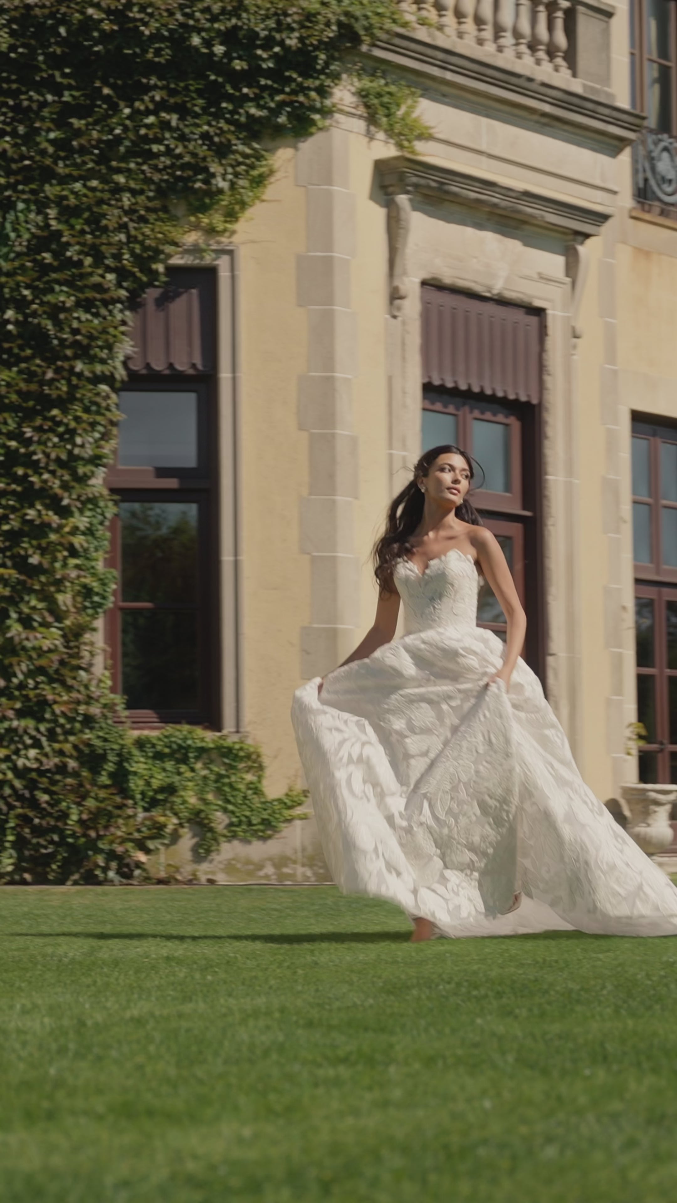 The strapless ballgown wedding dress is a masterpiece of craftsmanship and elegance, designed to make a bride feel regal on her special day. What sets this dress apart is its organic hand-cut filigree detail. The delicate and intricate filigree is crafted from sheer organza fabric, adding an ethereal and whimsical touch to the gown. The filigree design is created by skilled artisans who meticulously cut and shape the organza into swirling, botanical-inspired patterns. The organza filigree overlays the voluminous layers of the ballgown skirt, adding a sense of depth and dimension.