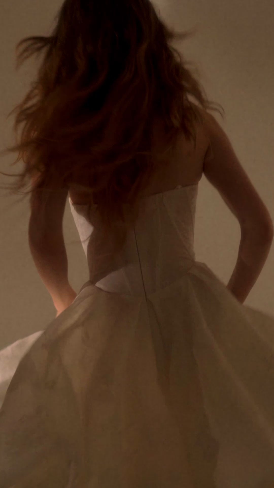 This wedding dress features our signature shell corseted bodice crafted in soft, painted floral organza, offering a delicate, romantic feel. The bodice hugs the figure, while soft, adjustable drapes throughout the skirt add volume and create dramatic movement, making the gown ethereal and full of life. Perfect for the bride seeking a blend of elegance and fluidity.